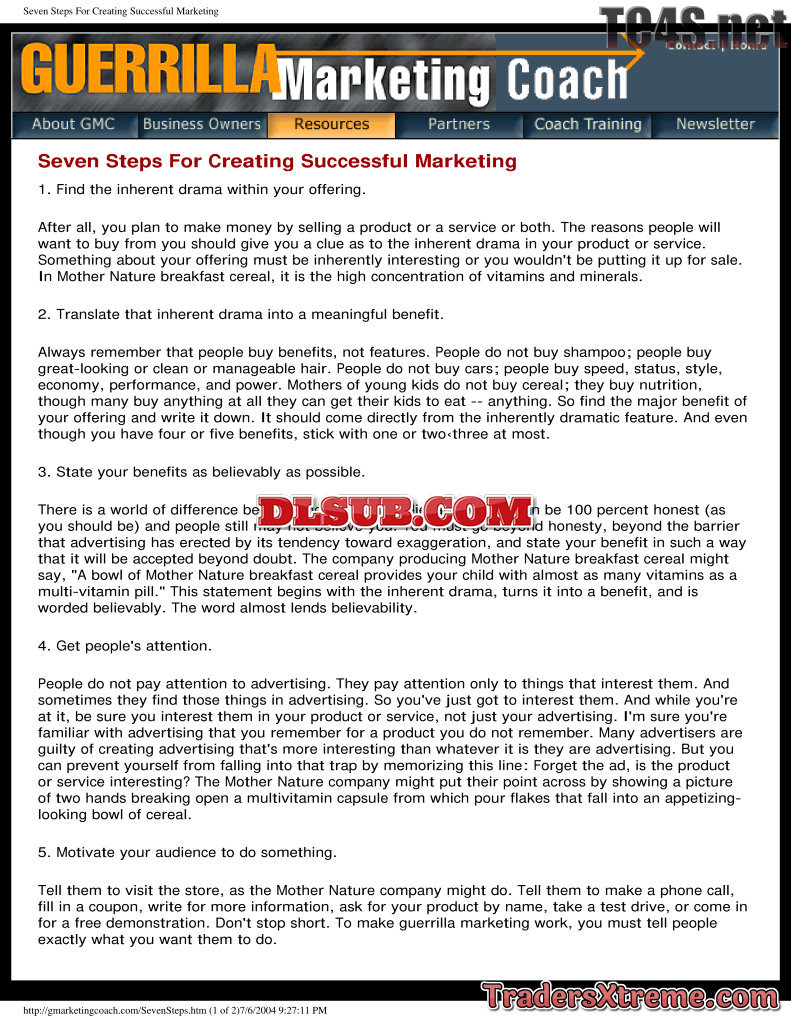 Guerrilla Marketing Articles Seven Steps For Creating Successful Marketing - JPG Image File