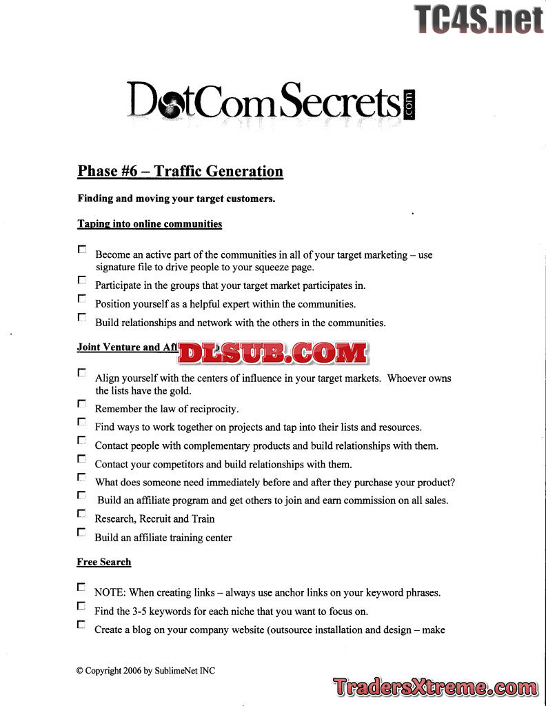 Dotcomsecrets Checklist