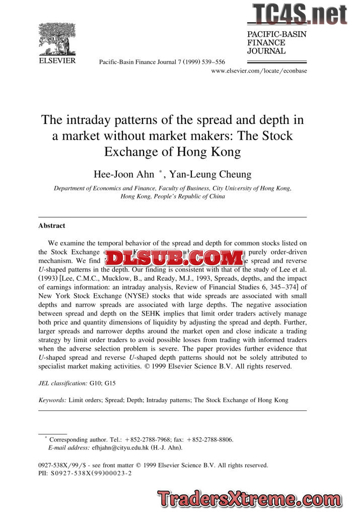 Ahn And Cheung The Intraday Patterns Of The Spread And Depth In A Market Without Market Makers The Stock Exchange Of Hong Kong - JPG Image File